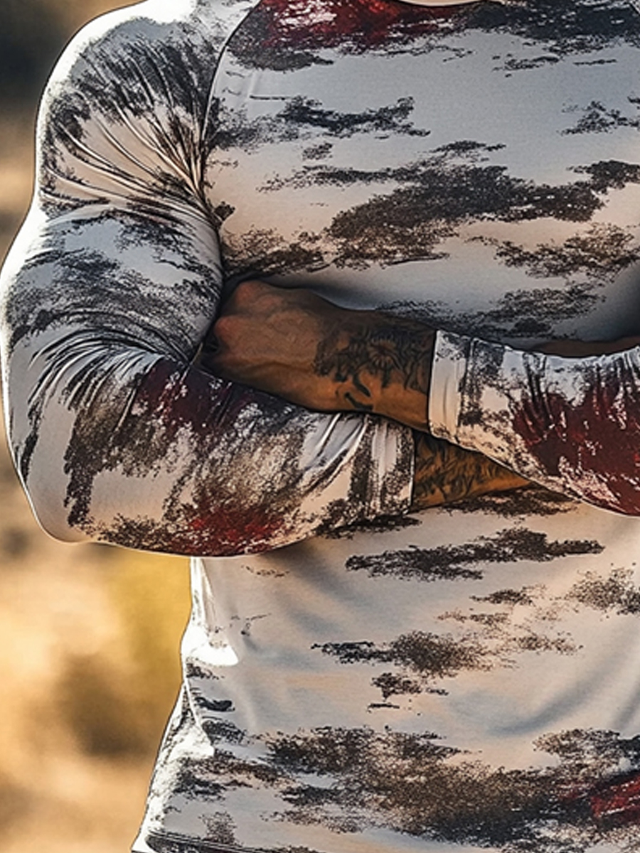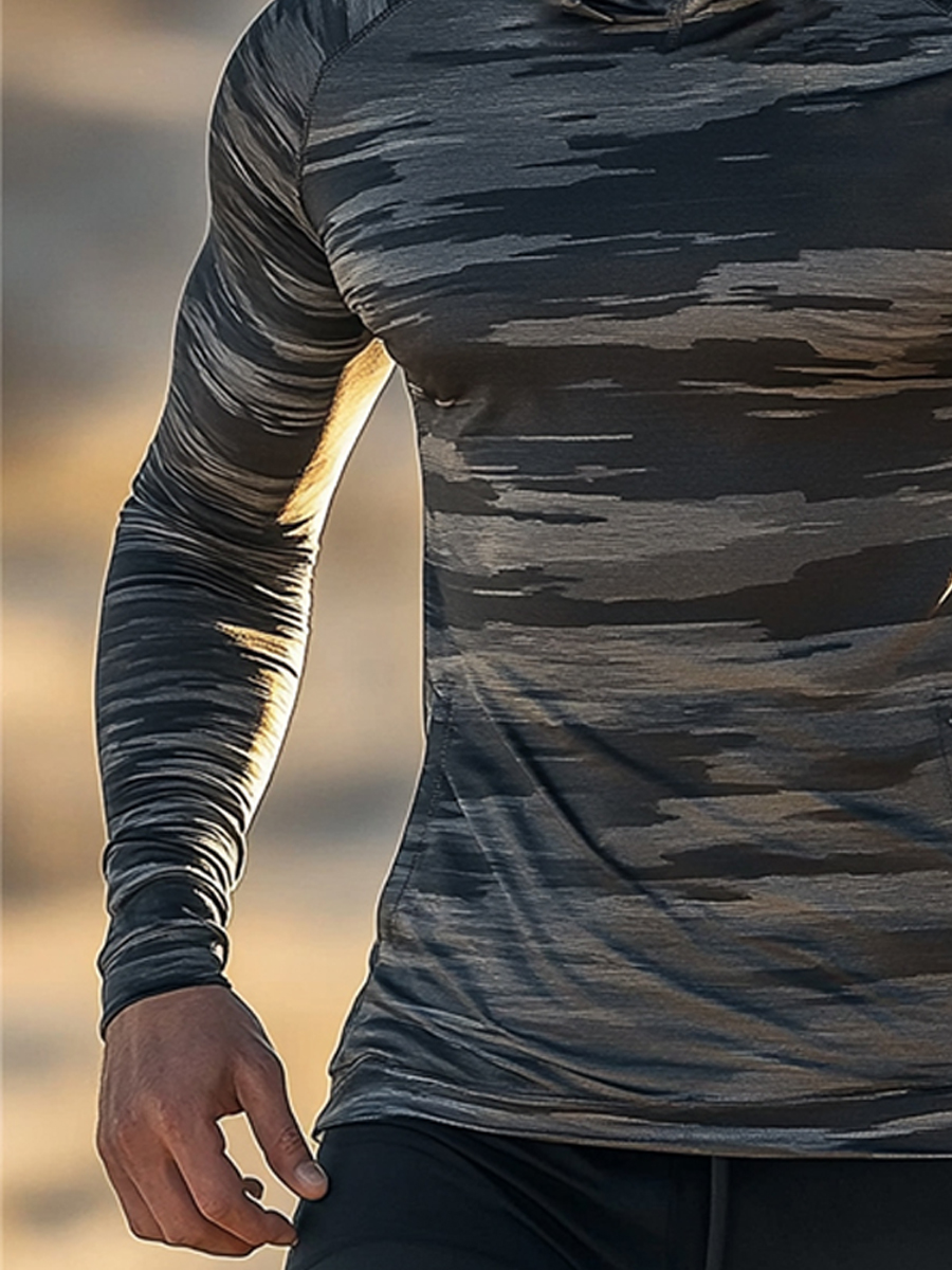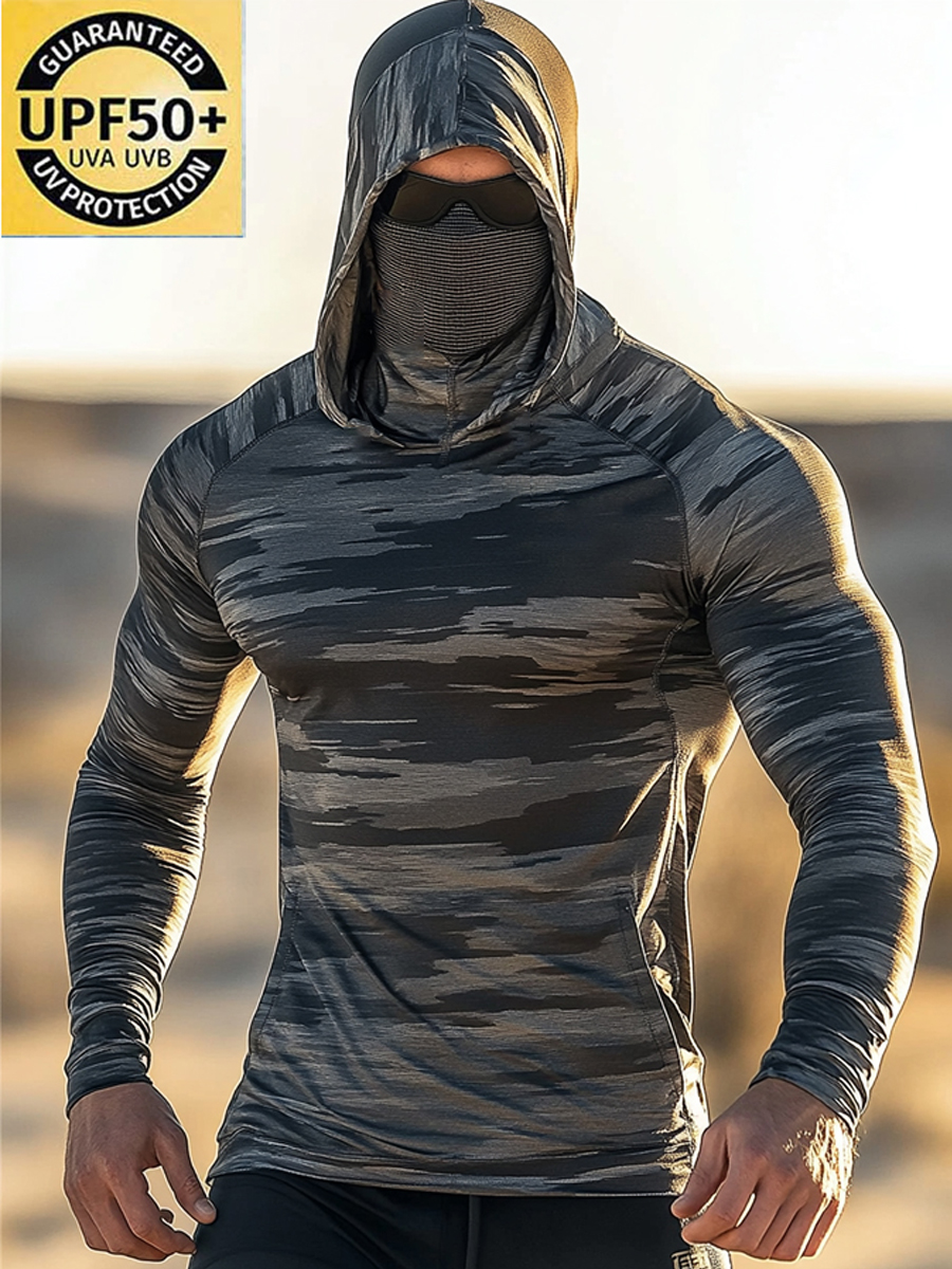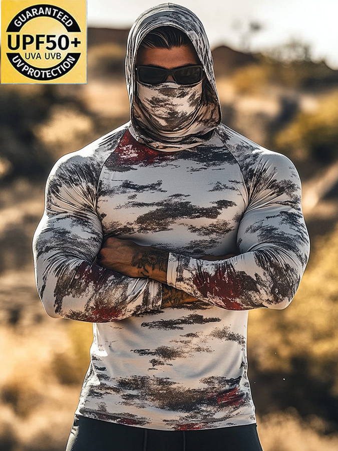 Men's Raglan Sleeve Finger Gloves Face Mask Abstract Camouflage Print Sun Protection Hoodie
