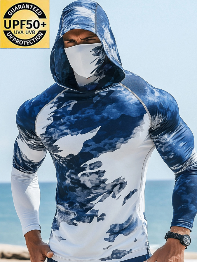 Men's raglan sleeve finger gloves face mask tie-dye camouflage print sun protection hoodie