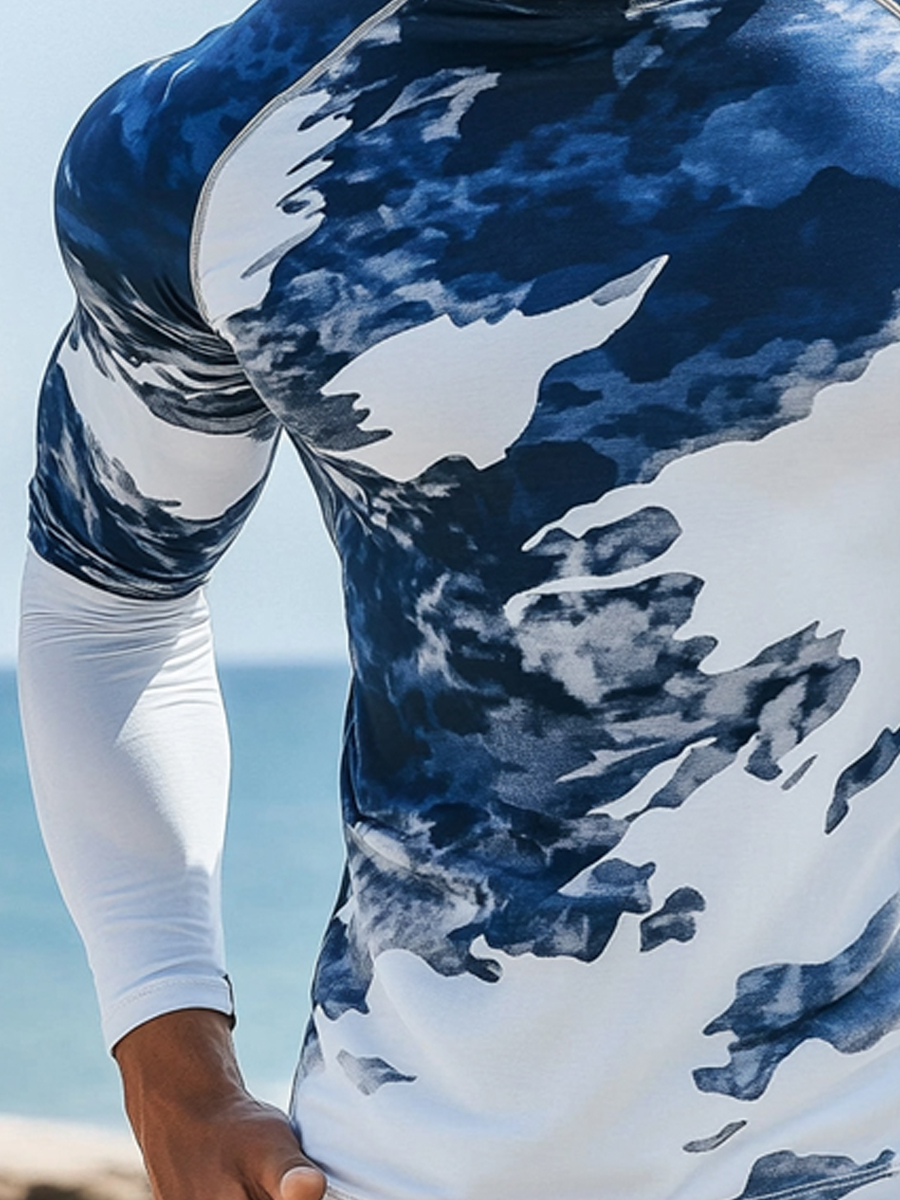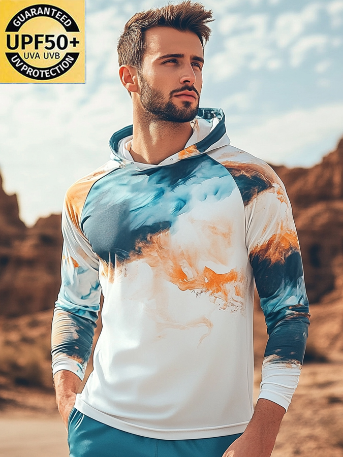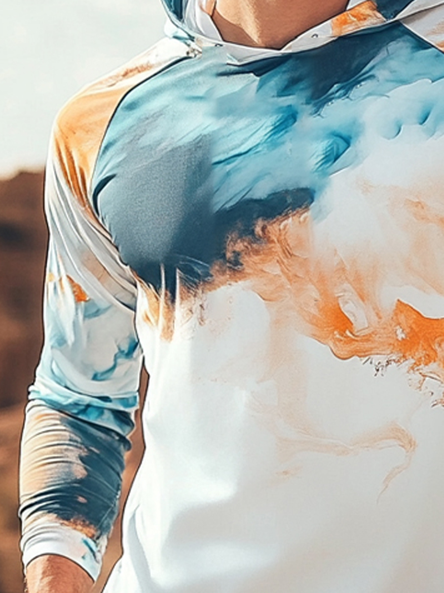 Men's Raglan Sleeve Finger Gloves Abstract Tie Dye Print Sun Protection Hoodie
