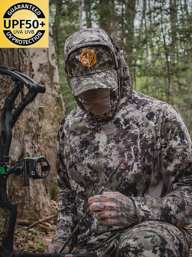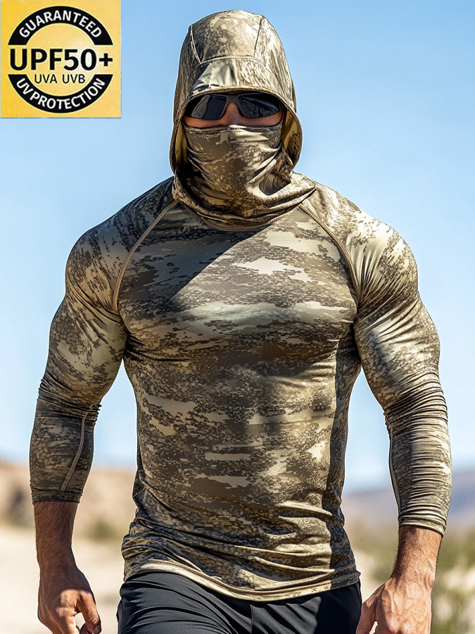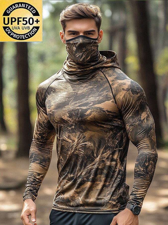 Men'S UPF 50+Hunting Hoodie With Built-In Mask -Hunting Concealment Camouflage- Quick-Dry Performance Sun Hoodie