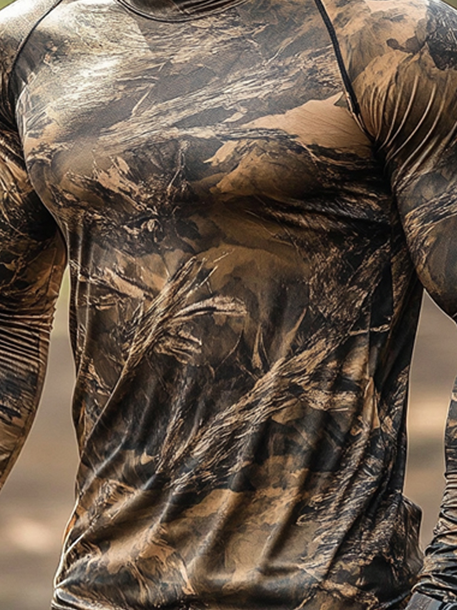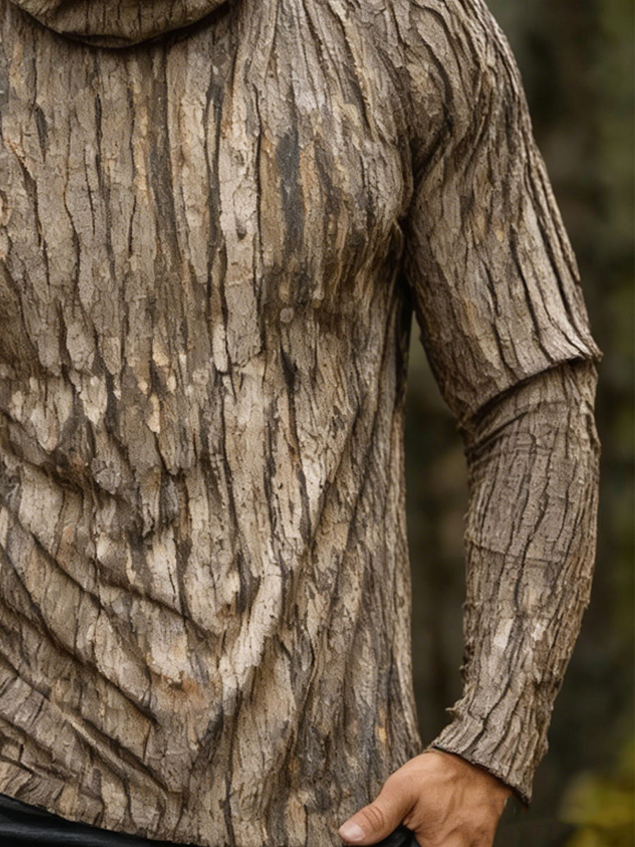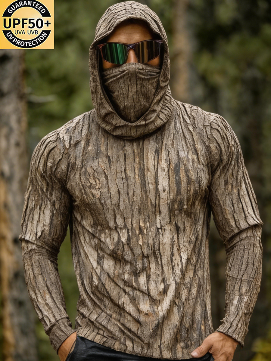 Men's Raglan Sleeve Finger Gloves Face Mask Tree Bark Camouflage Print Sun Protection Hoodie