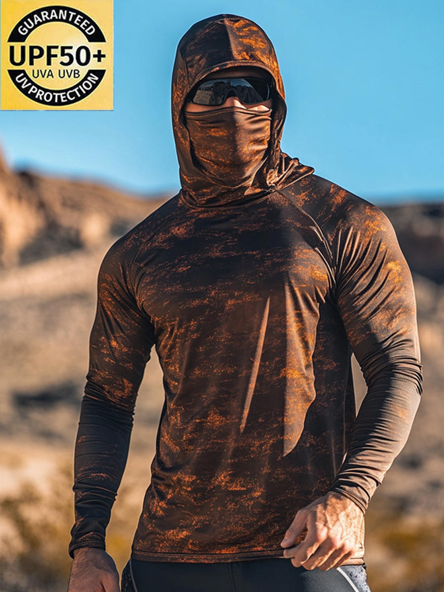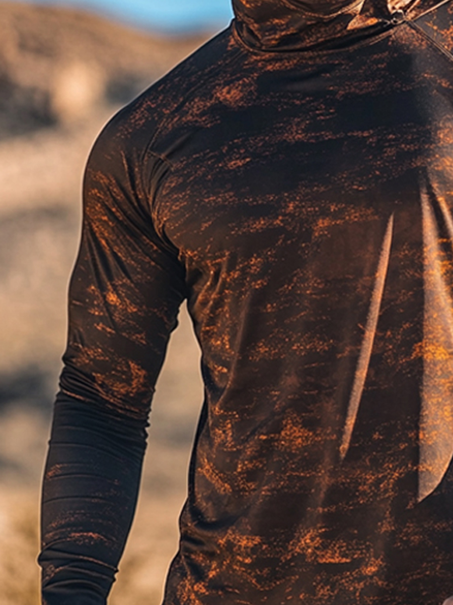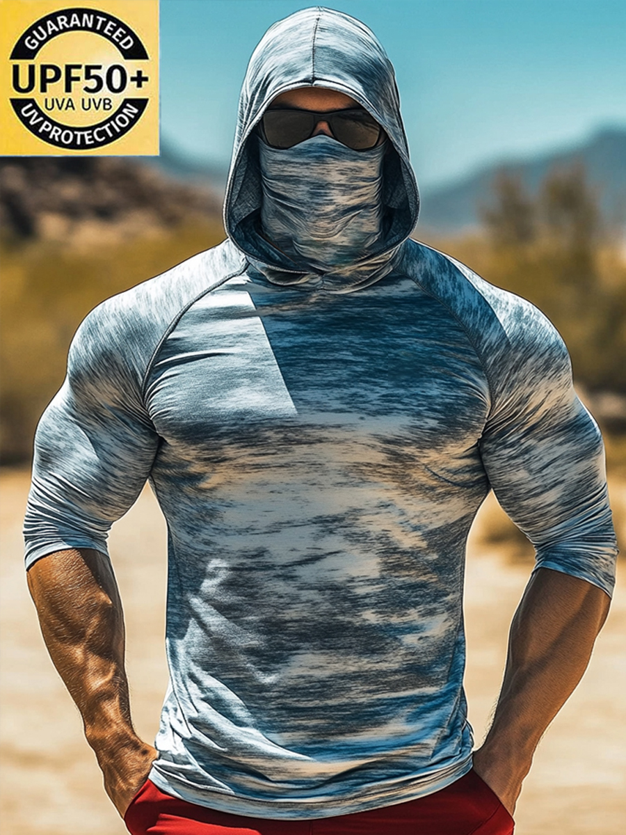 Men's Raglan Sleeve Finger Gloves Face Mask Abstract Textured Print Sun Protection Hoodie