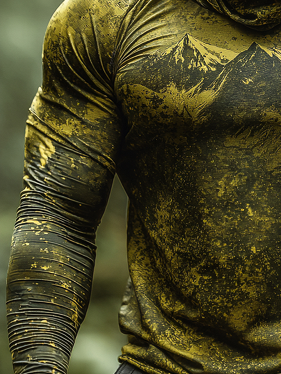 Men's Raglan Sleeve Finger Gloves Face Mask Abstract Mountains Texture Print Sun Protection Hoodie