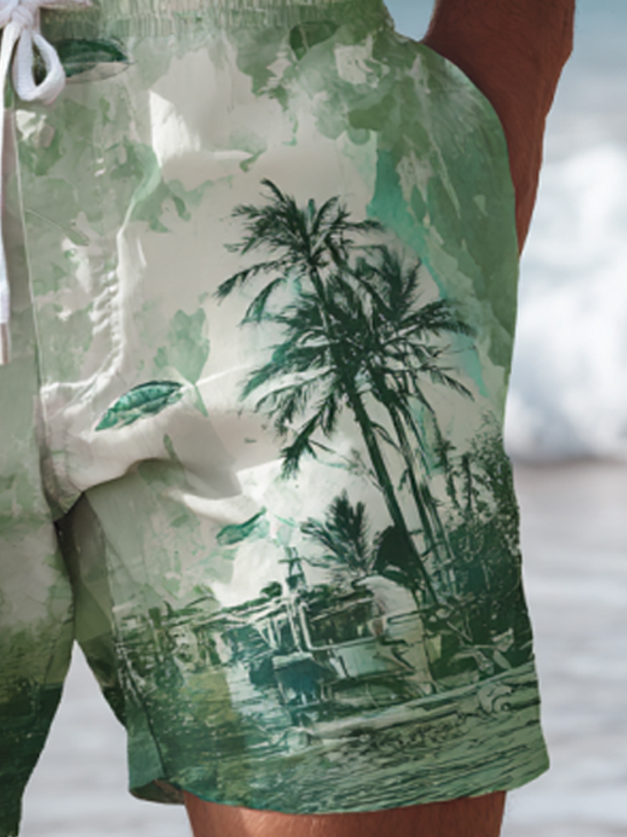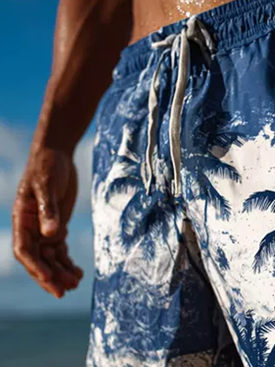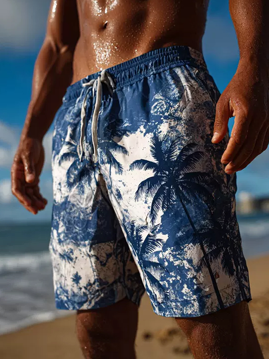 Men's Retro Palm Tree Print Beach Casual Quick-Drying Shorts