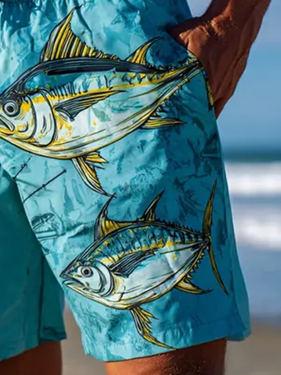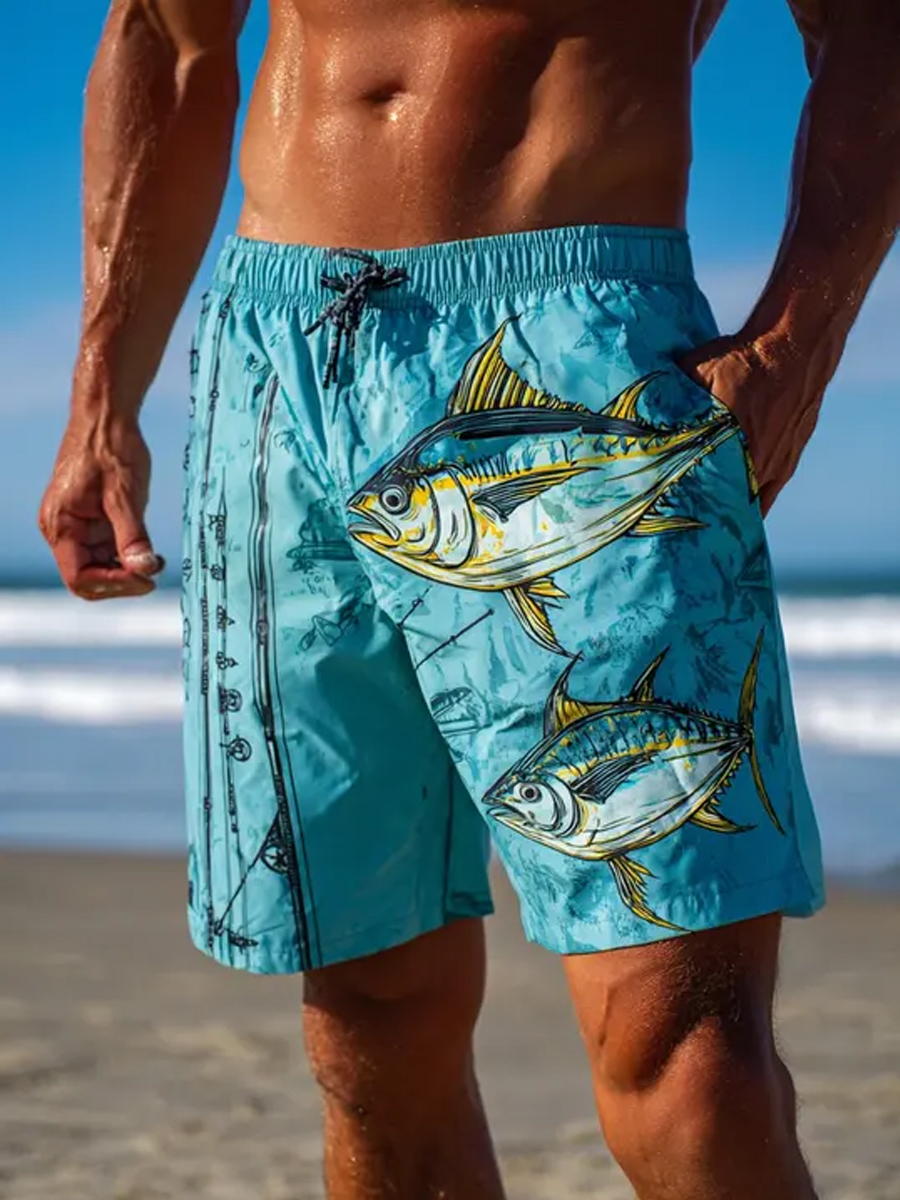 Men's Tuna Graphic Print Beach Casual Quick-Drying Shorts