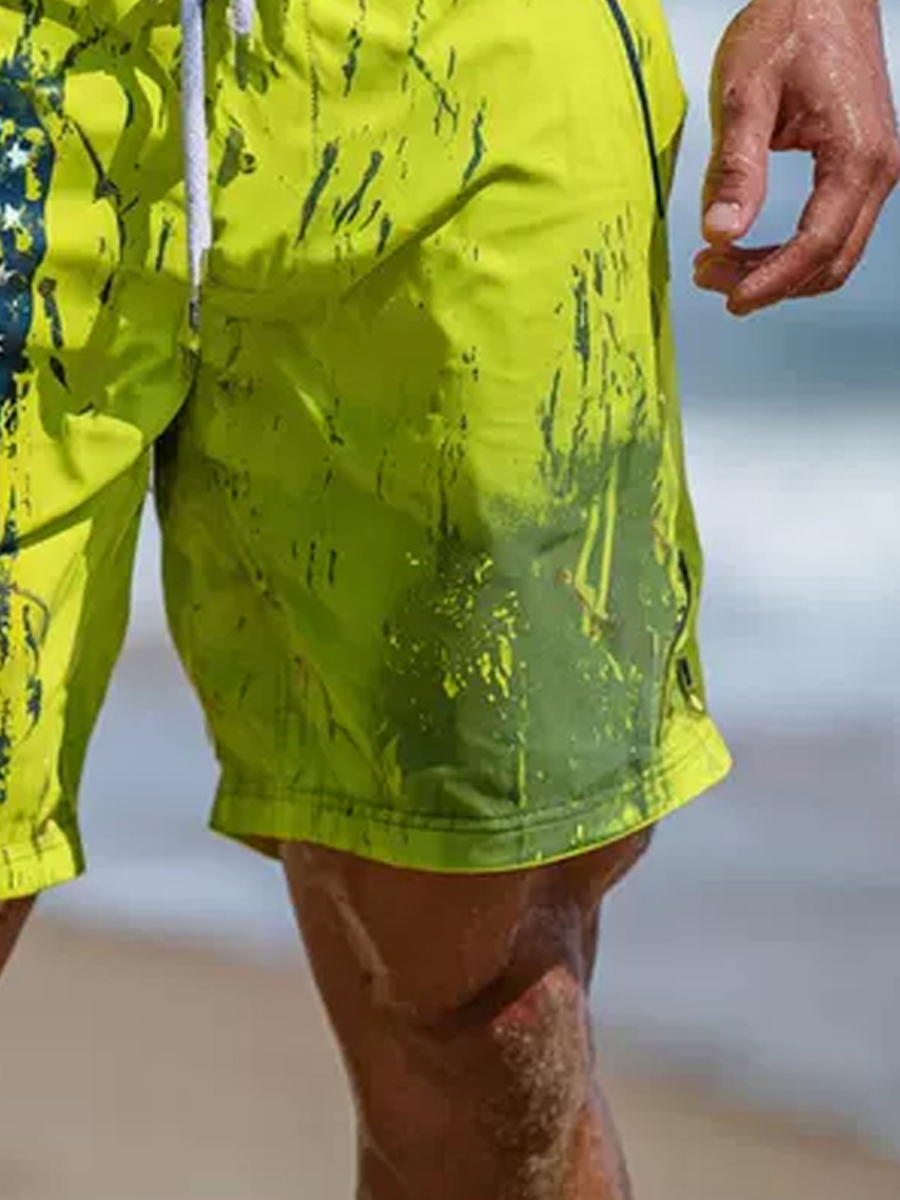 Men's Stars and Stripes Flag Print Beach Casual Quick-Drying Shorts
