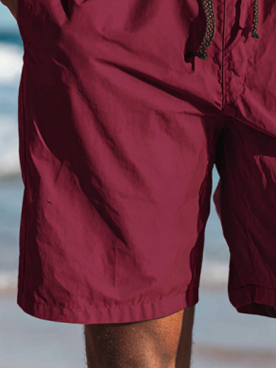 Men's Simple Solid Color Burgundy Beach Casual Quick-Drying Shorts