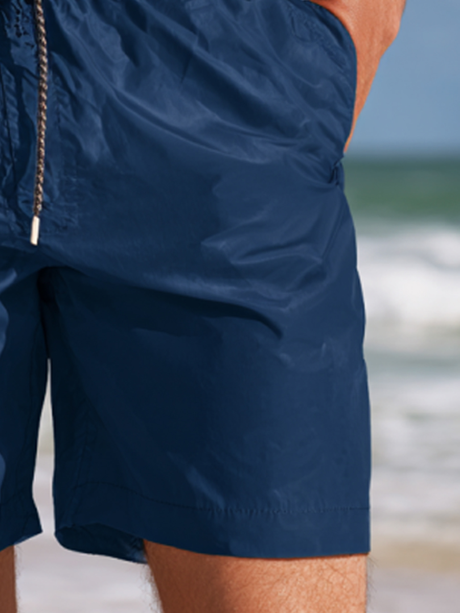 Men's Minimalist Solid Color Navy Beach Casual Quick-Drying Shorts