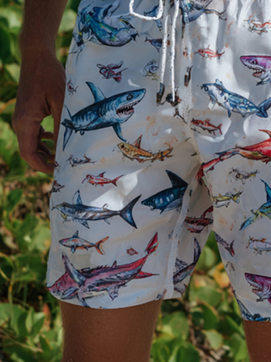 Men's All Over Print Vivid Multicolor Shark Pattern Beach Casual Quick-Drying Shorts
