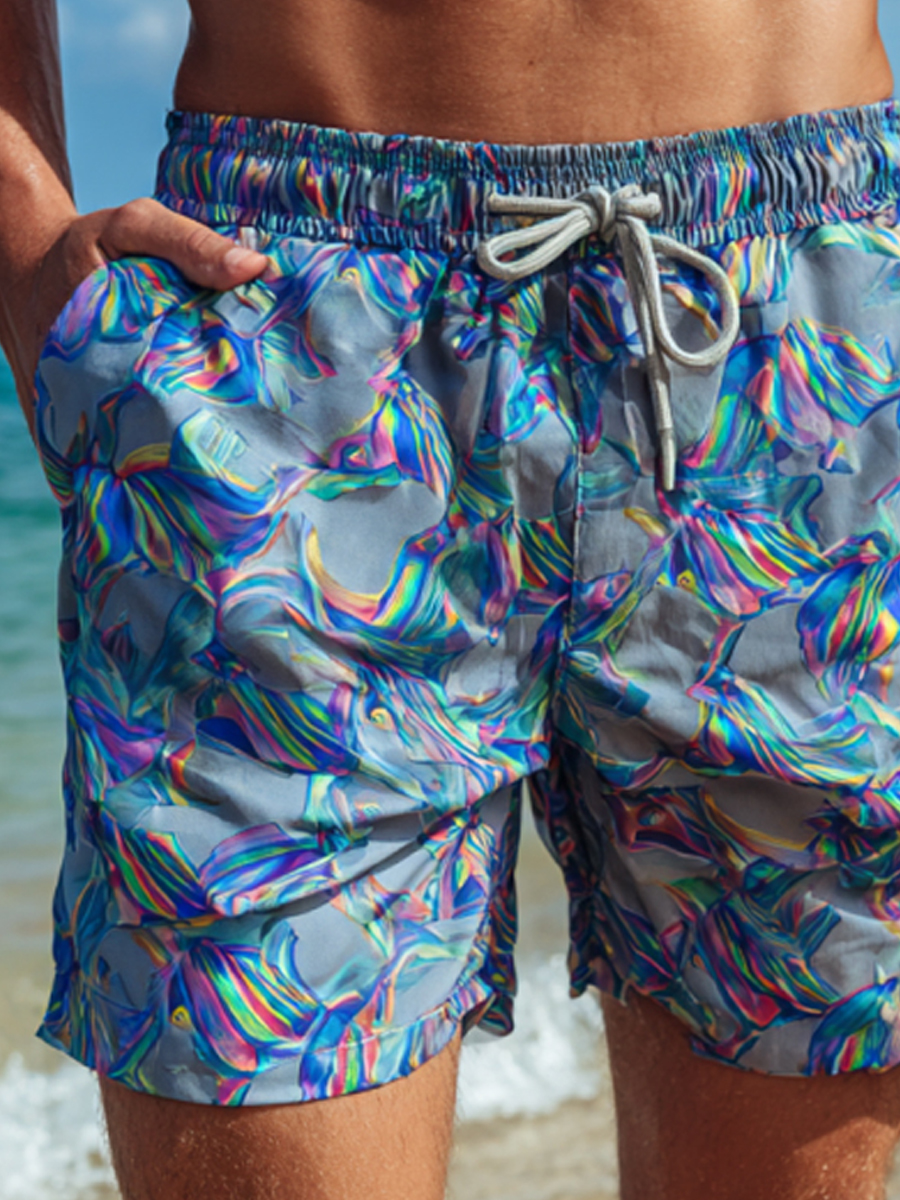 Men's Psychedelic Iridescent Gradient Print Beach Casual Quick-Drying Shorts