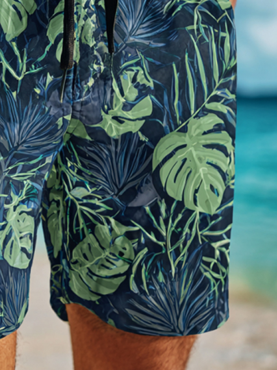Men's Retro Dark Tropical Plant Print Beach Casual Quick-Drying Shorts