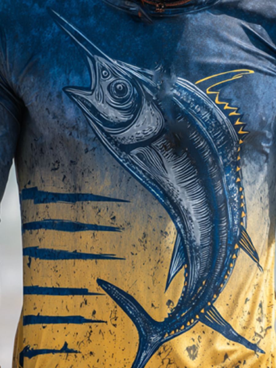 Men's Single Side Large Marlin Fish Print Beach Casual Quick-Drying Shorts