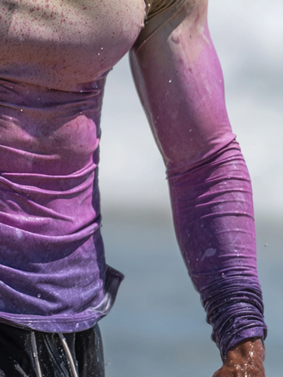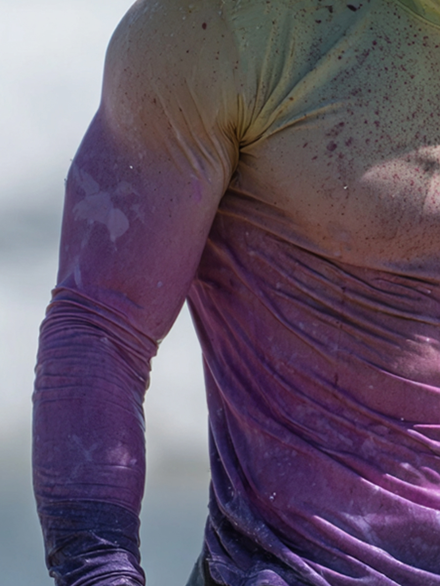 Men's Outdoor Sun Protection Breathable Cool Mask Yellow Green to Purple Gradient Splatter Print Hooded Sun Protection Long Sleeve Top