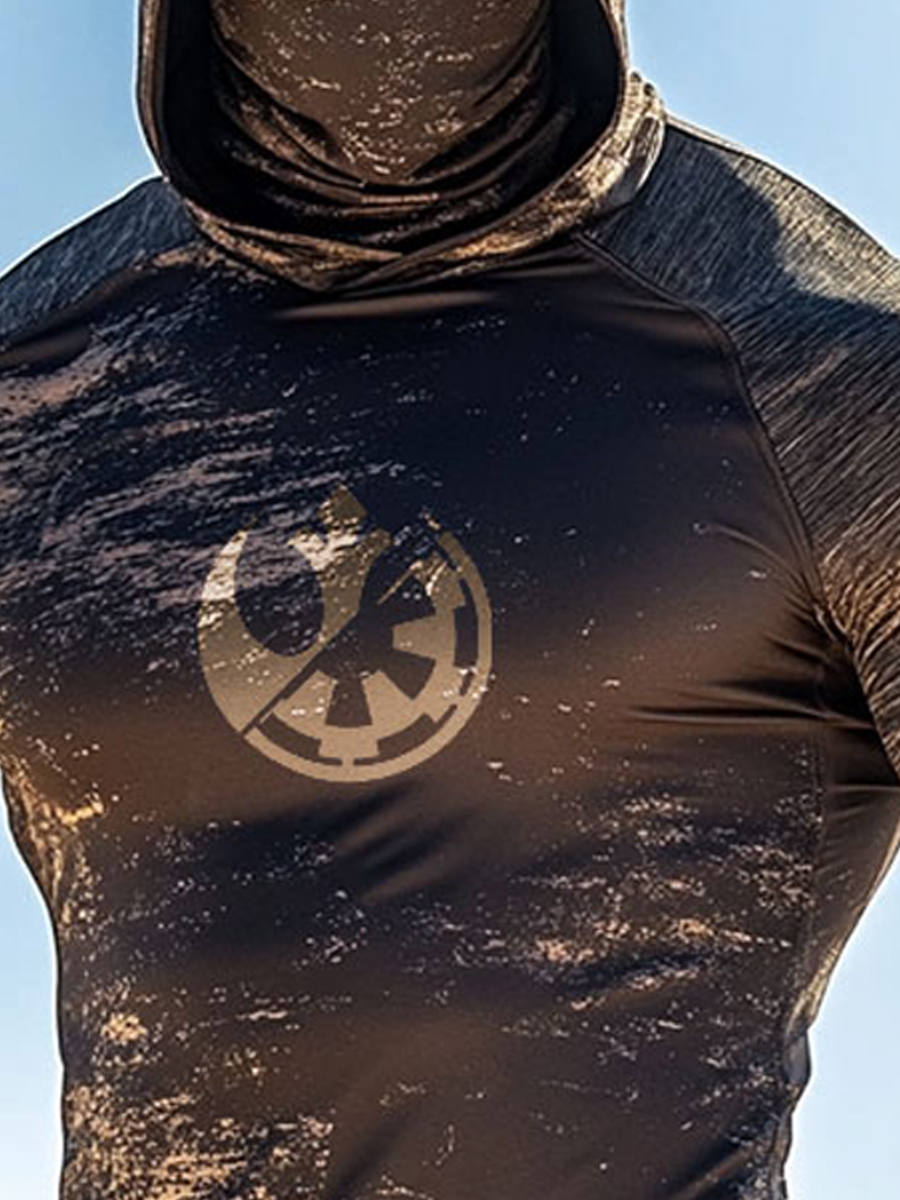Men's Raglan Sleeve Finger Gloves Face Mask Retro Galaxy Battle Emblem Graphic Print Sun Protection Hoodie