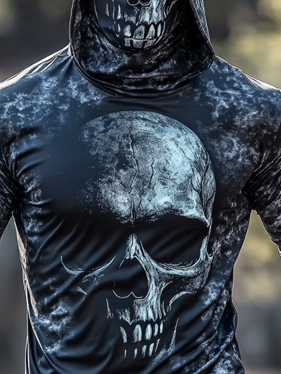 Men's Raglan Sleeve Finger Gloves Face Mask Retro Skull Graphic Tie Dye Print Sun Protection Hoodie