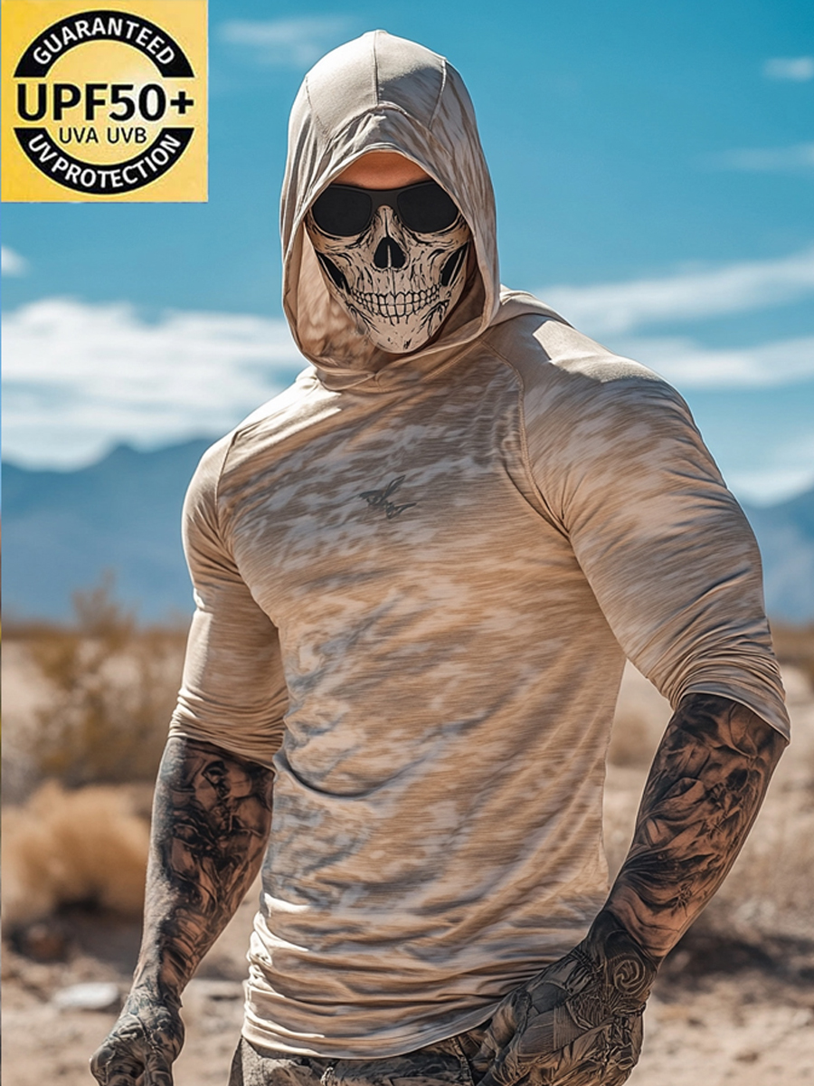 Men'S UPF 50+ Hoodie With Built-In Mask-Desert Camouflage Skull Mask-Dry Performance Sun Hoodie