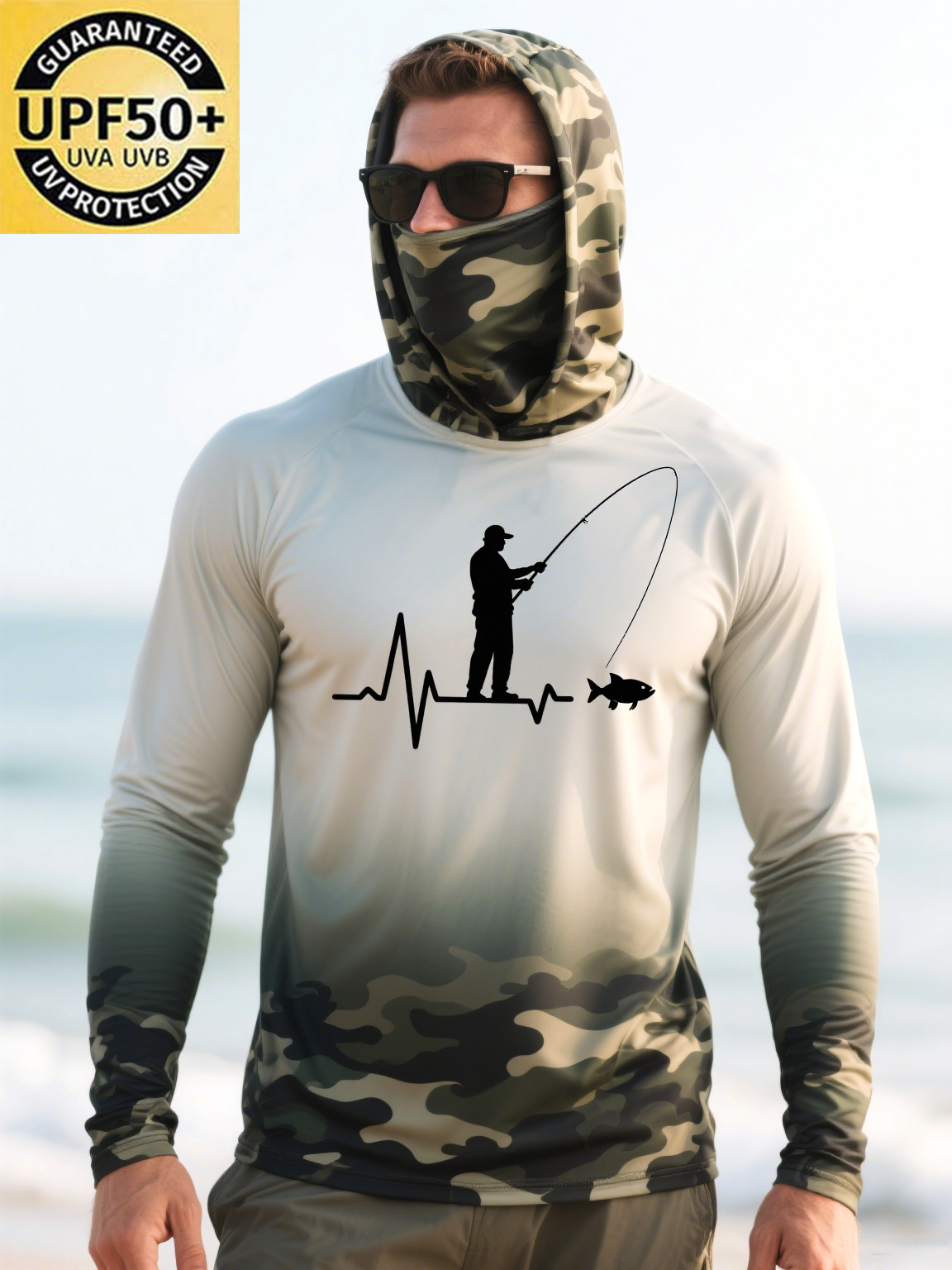 Men's Raglan Sleeve Finger Gloves Face Mask Fishing Print Sun Protection Clothing$34.98 USD$43.75 USD