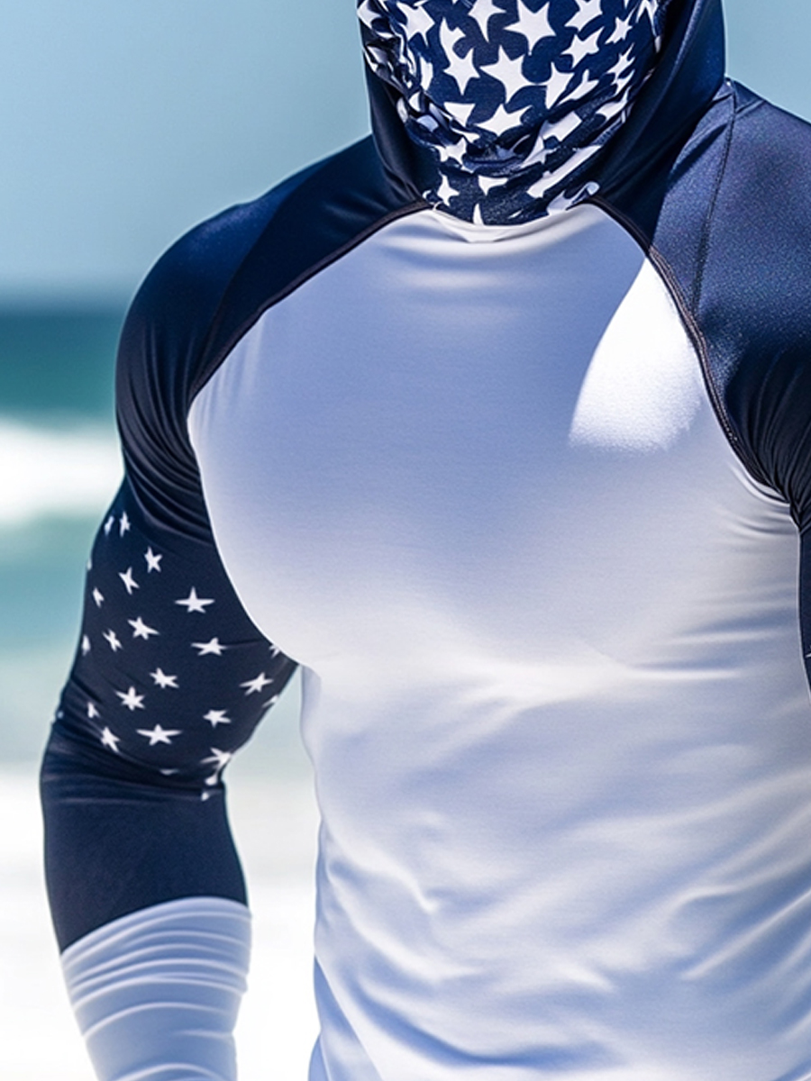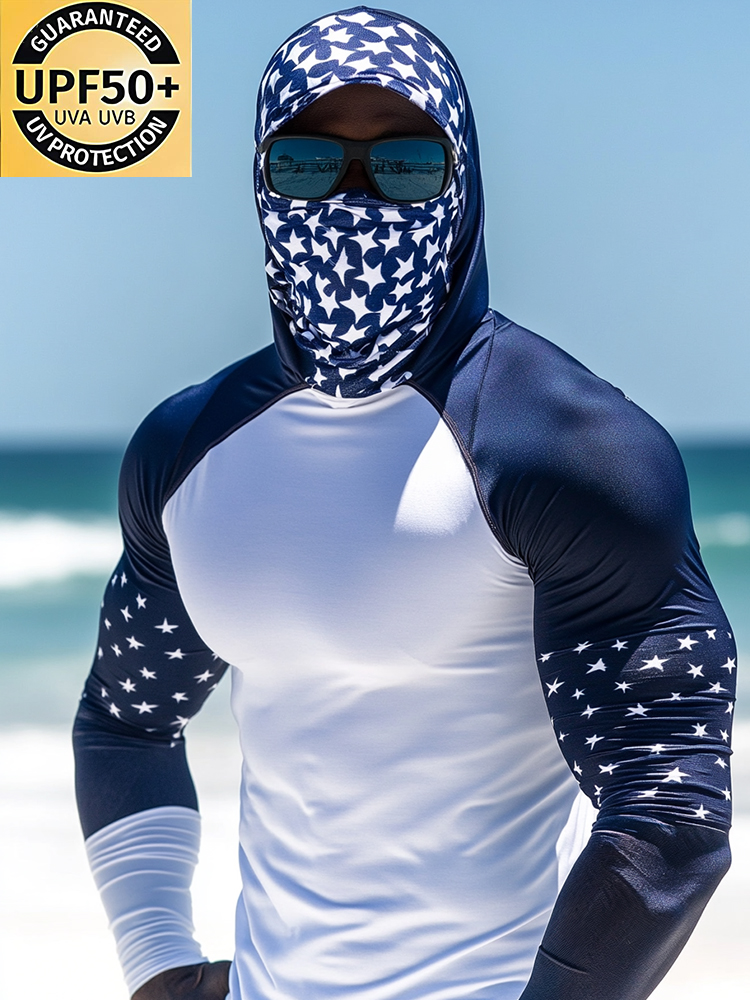 Men'S Raglan Sleeve Finger Gloves Face Mask Stars Print Sun Protection Hoodie$34.98 USD$43.75 USD