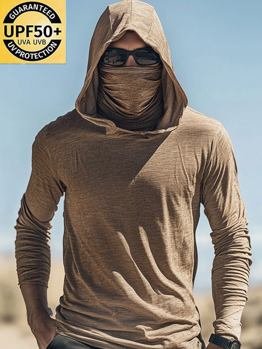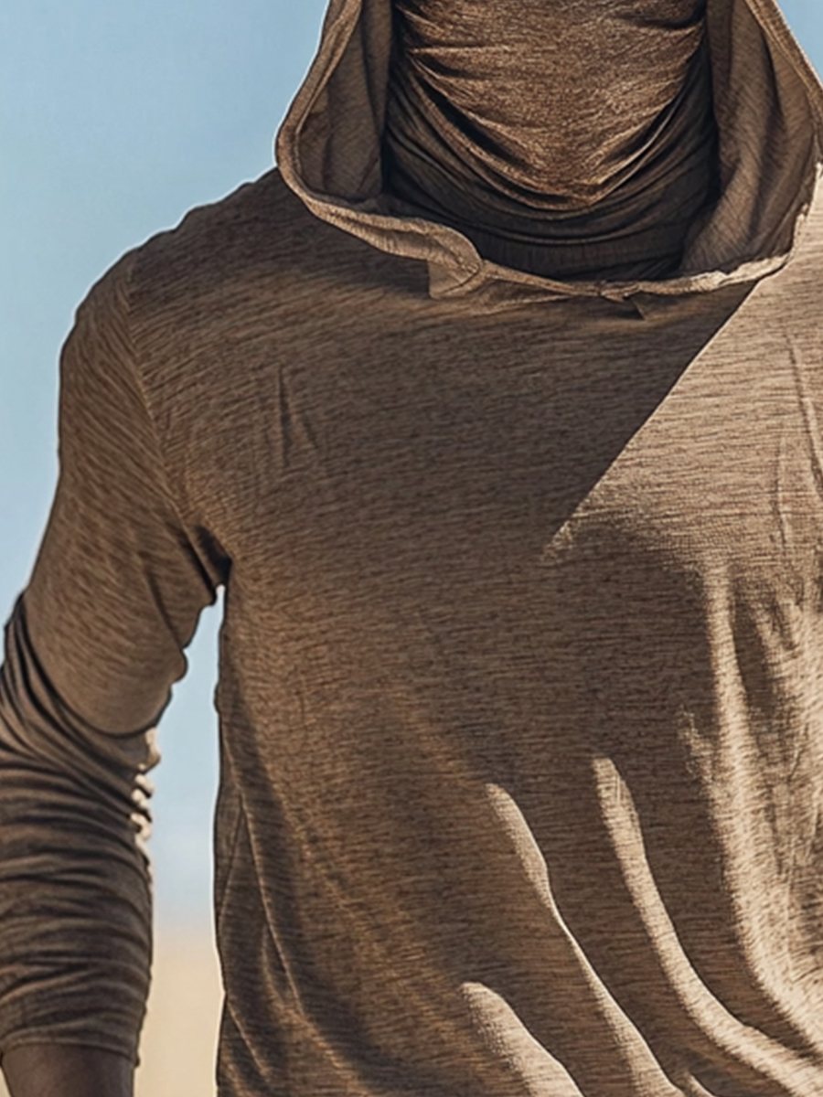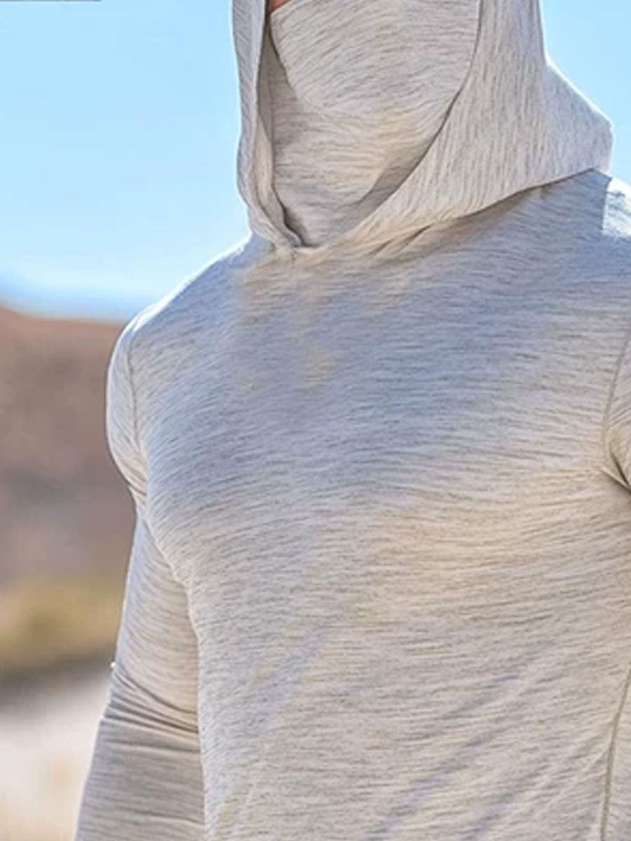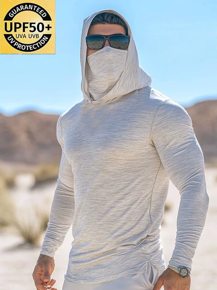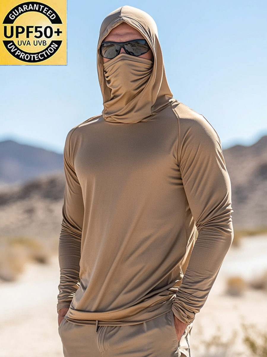 Men'S UPF 50+ Hoodie With Built-In Mask-Simple Beige Texture- Quick-Dry Performance Sun Hoodie