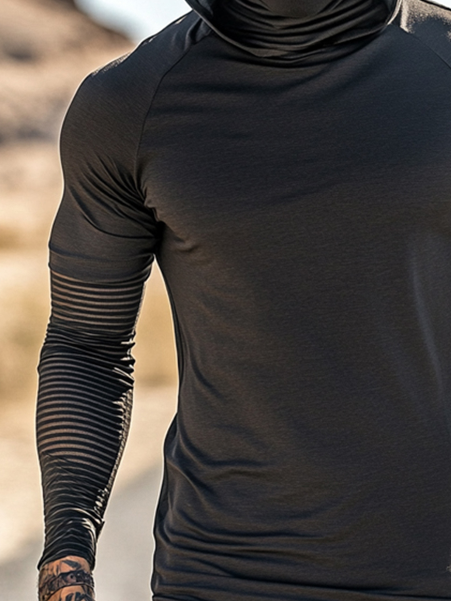 Men's UPF 50+ Sun Protection Fishing Hoodie with Built-in Face Mask - Dark Grey Striped Design - Quick-Drying High-Performance Sun Protection Hoodie