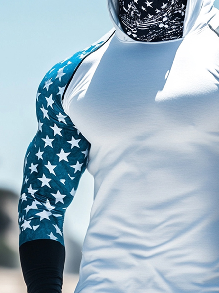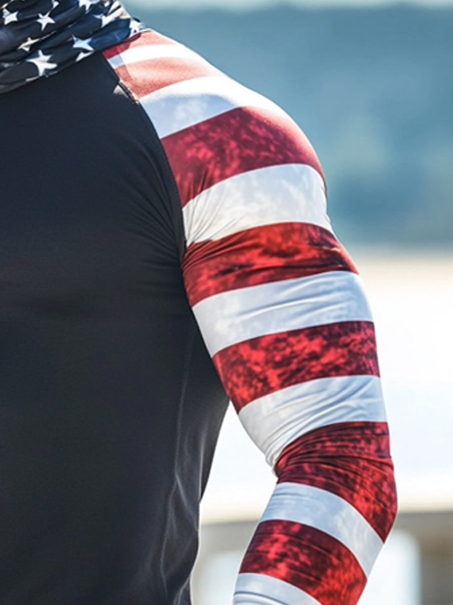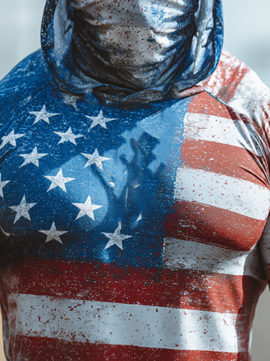 Men's Raglan Sleeve Finger Gloves Face Mask Patriotic Stripe Star Print Sun Protection Hoodie