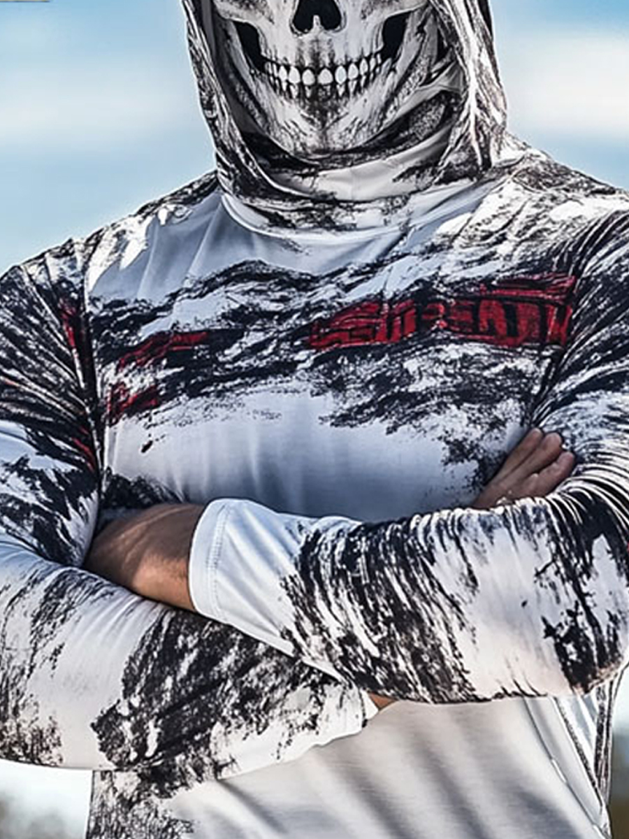 Men's Raglan Sleeve Finger Gloves Face Mask Skull Face Print Sun Protection Hoodie