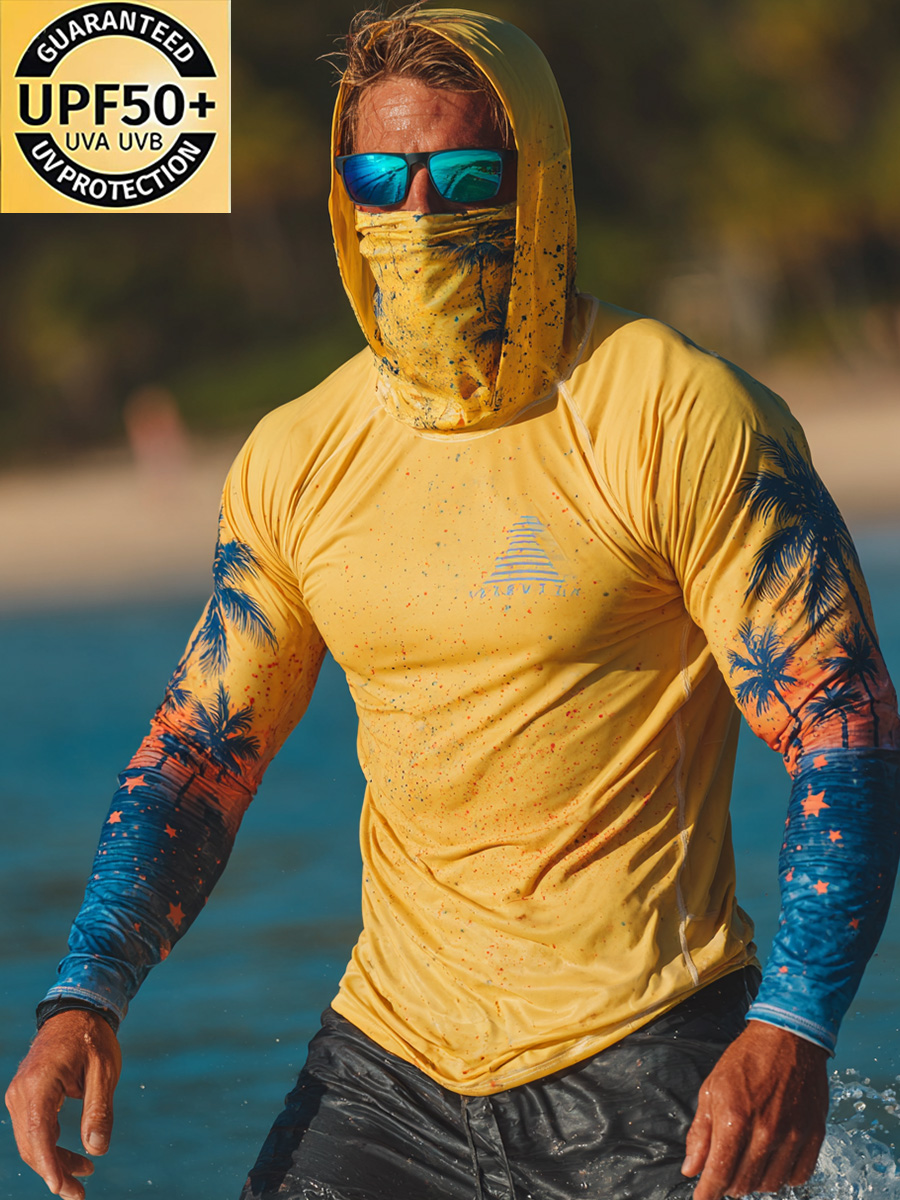 Men's Raglan Sleeve Finger Gloves Face Mask Tropical Palm Trees Print Sun Protection Hoodie