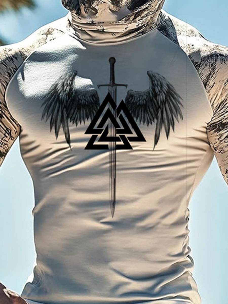 Men's Raglan Sleeve Finger Gloves Face Mask Viking Totem Print Sun Protection Hoodie