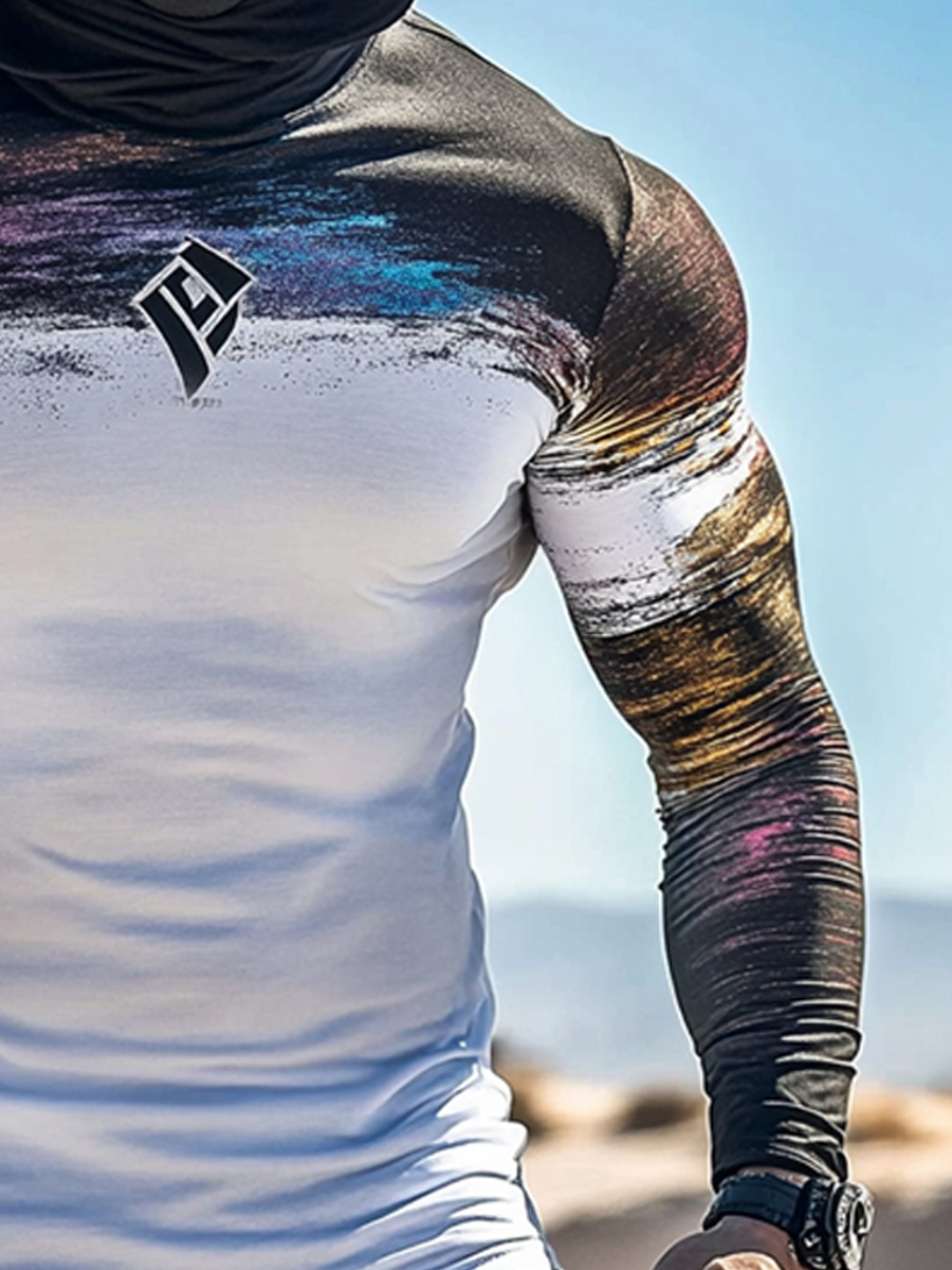 Men's Raglan Sleeve Finger Gloves Face Mask Airbrush Print Sun Protection Hoodie