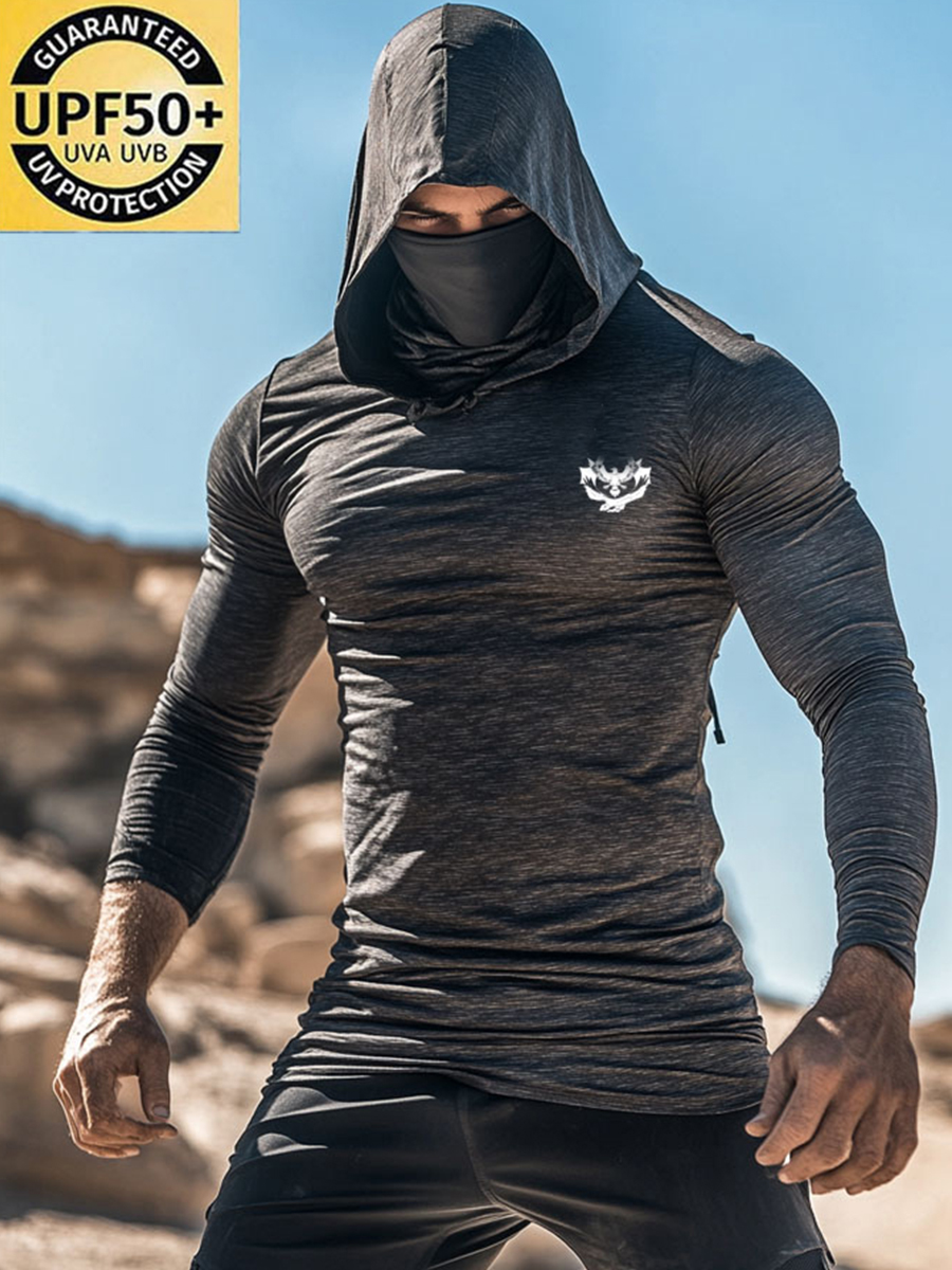 Men'S UPF 50+ Hoodie With Built-In Mask-Game-Style Raglan Sleeves With Skull Pattern- Quick-Dry Performance Sun Hoodie