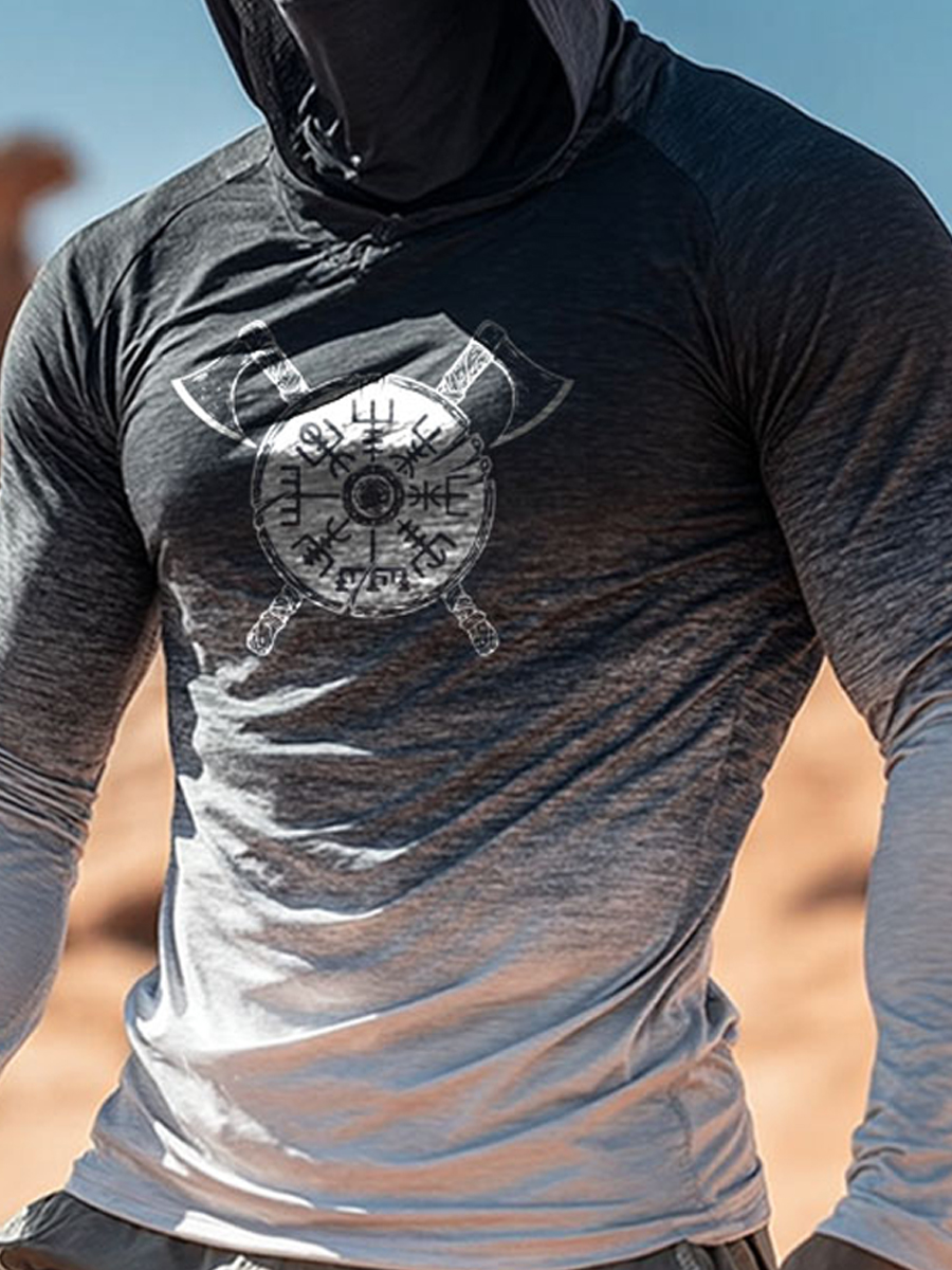 Men's Raglan Sleeve Finger Gloves Face Mask Valknut Print Sun Protection Hoodie