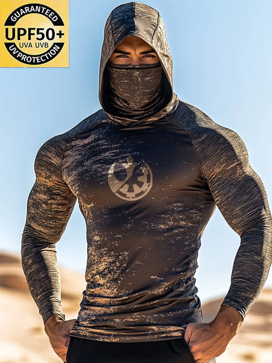 Men's Raglan Sleeve Finger Gloves Face Mask Retro Galaxy Battle Emblem Graphic Print Sun Protection Hoodie