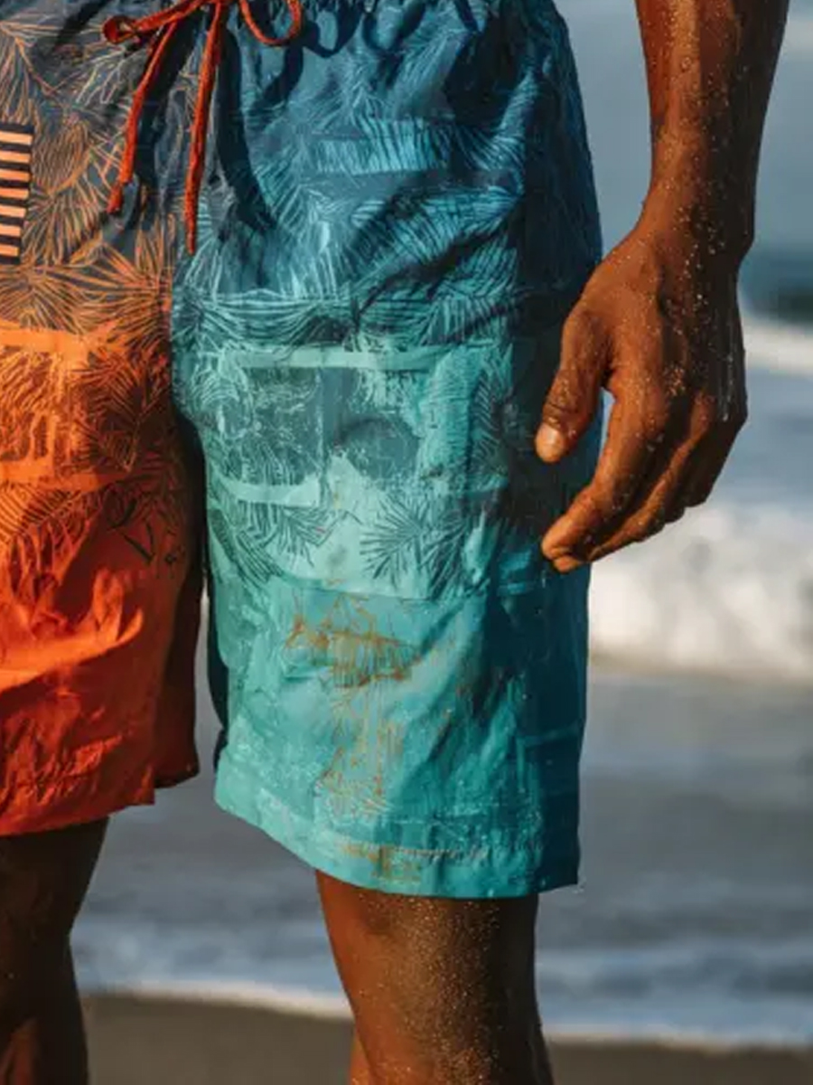 Men's Tropical Plants Sunset Scenery Print Beach Casual Quick-Drying Shorts