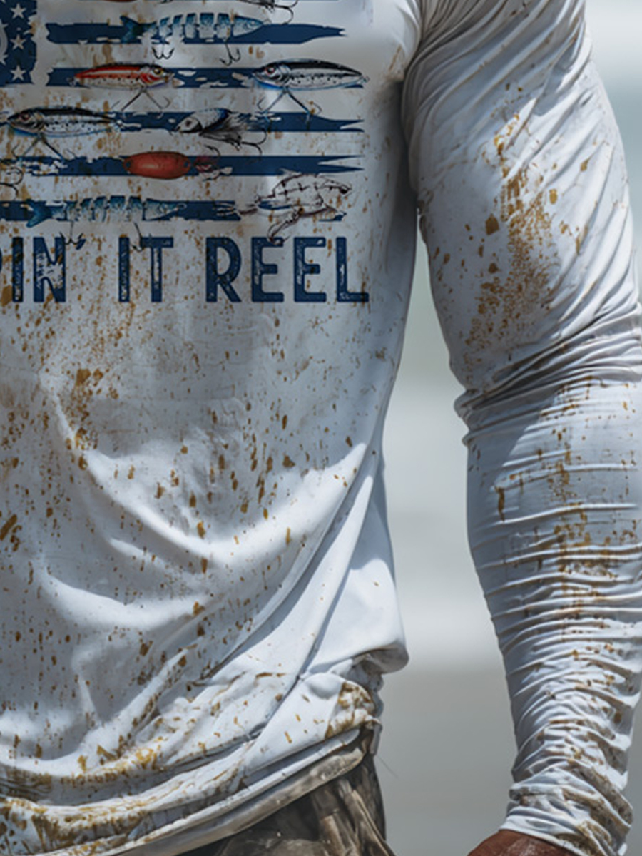 Men's Raglan Sleeve Finger Gloves Face Mask Flag Keepin' It Reel Print Sun Protection Hoodie