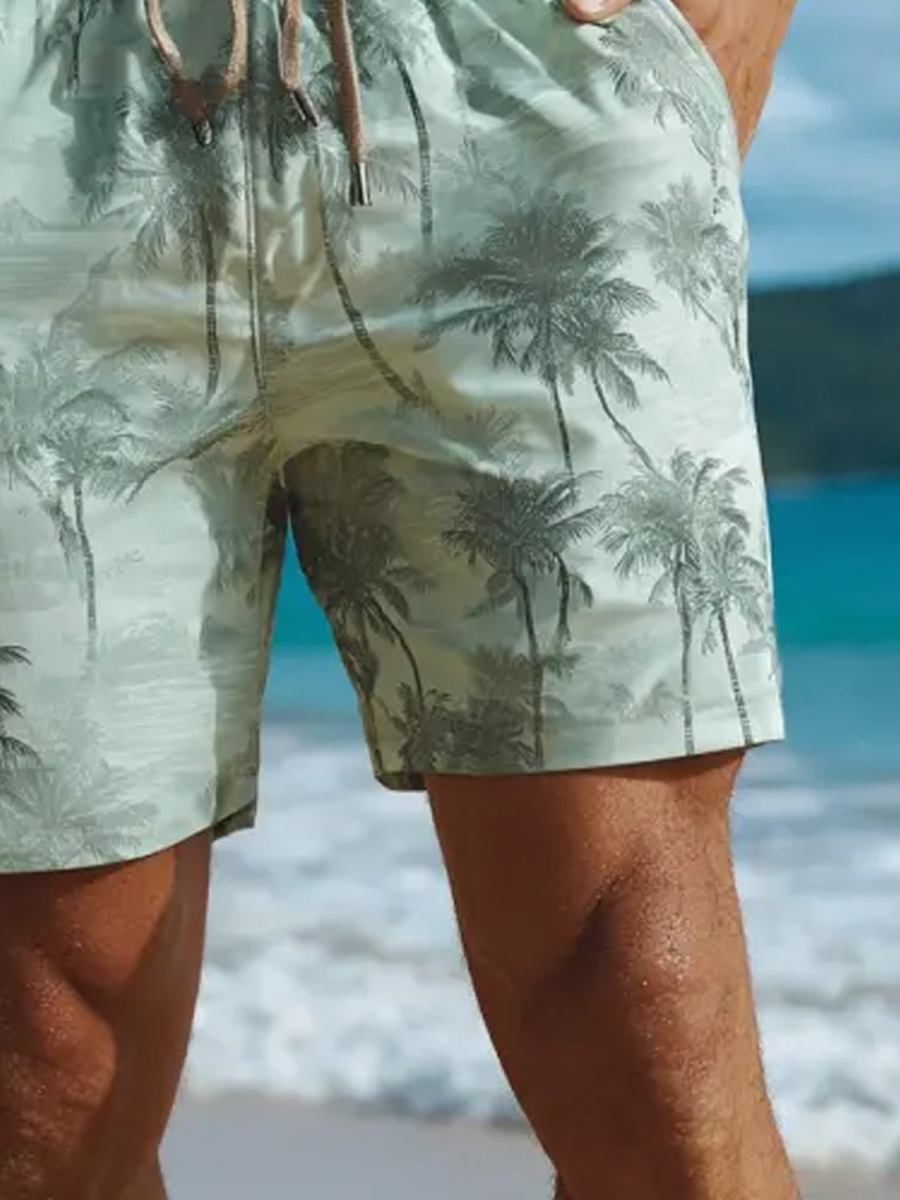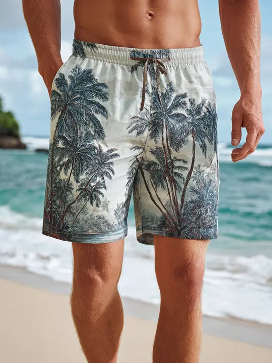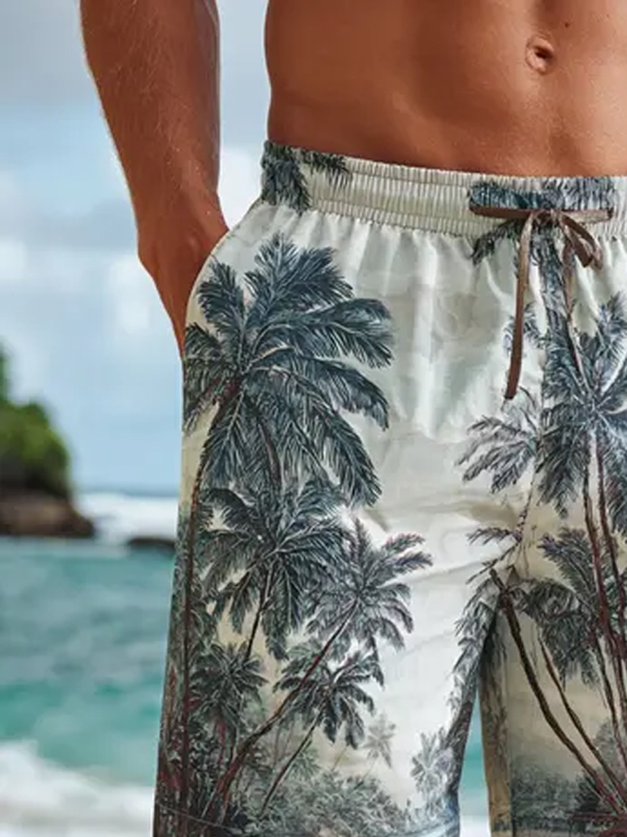 Men's Retro Palm Tree Print Beach Casual Quick-Drying Shorts