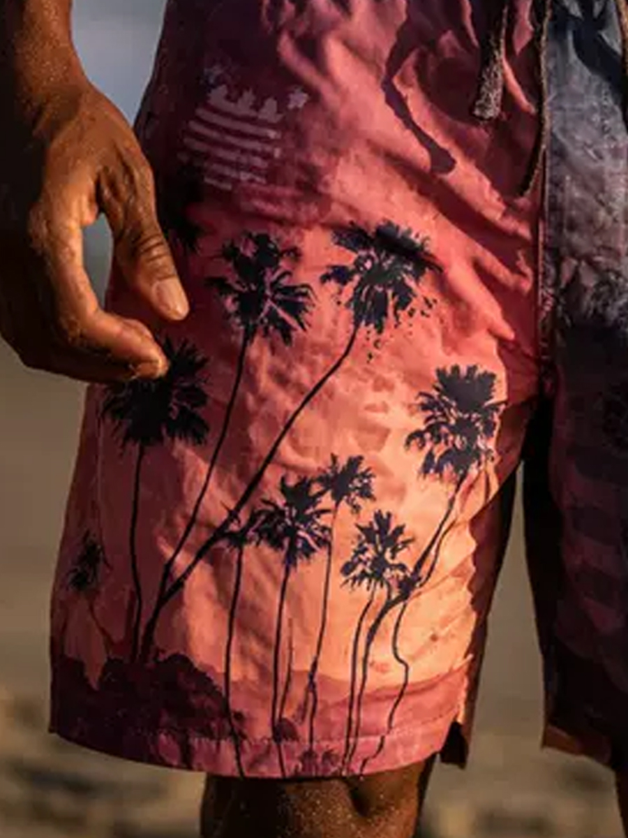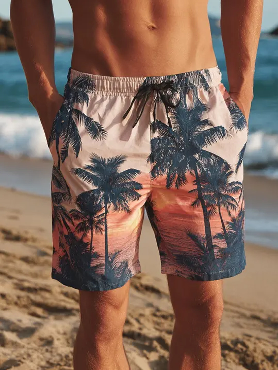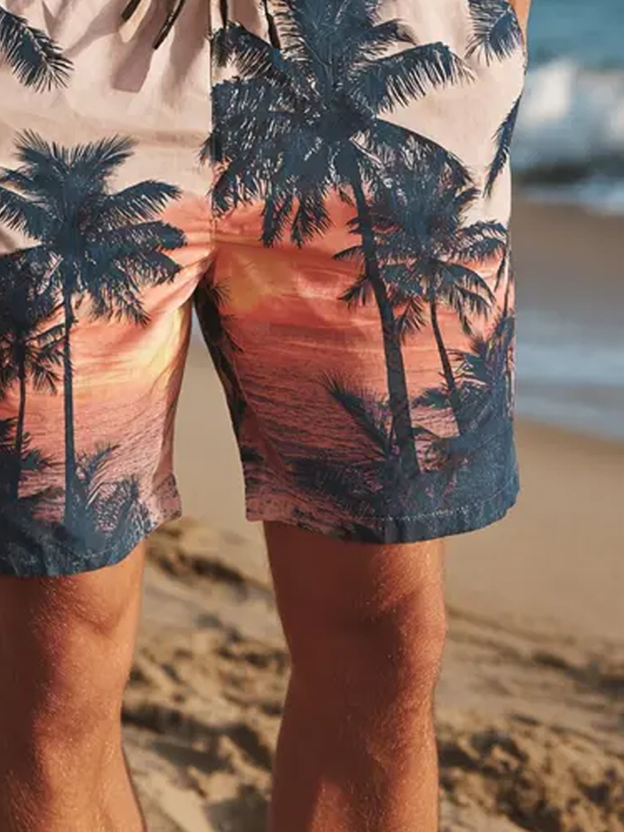 Men's Tropical Palm Trees Sunset Print Beach Casual Quick-Drying Shorts