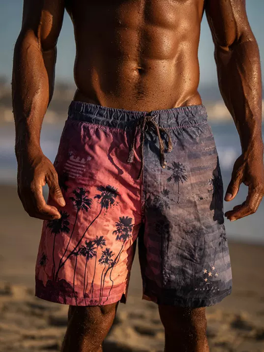 Men's Vintage Flag Palm Tree Print Beach Casual Quick-Drying Shorts