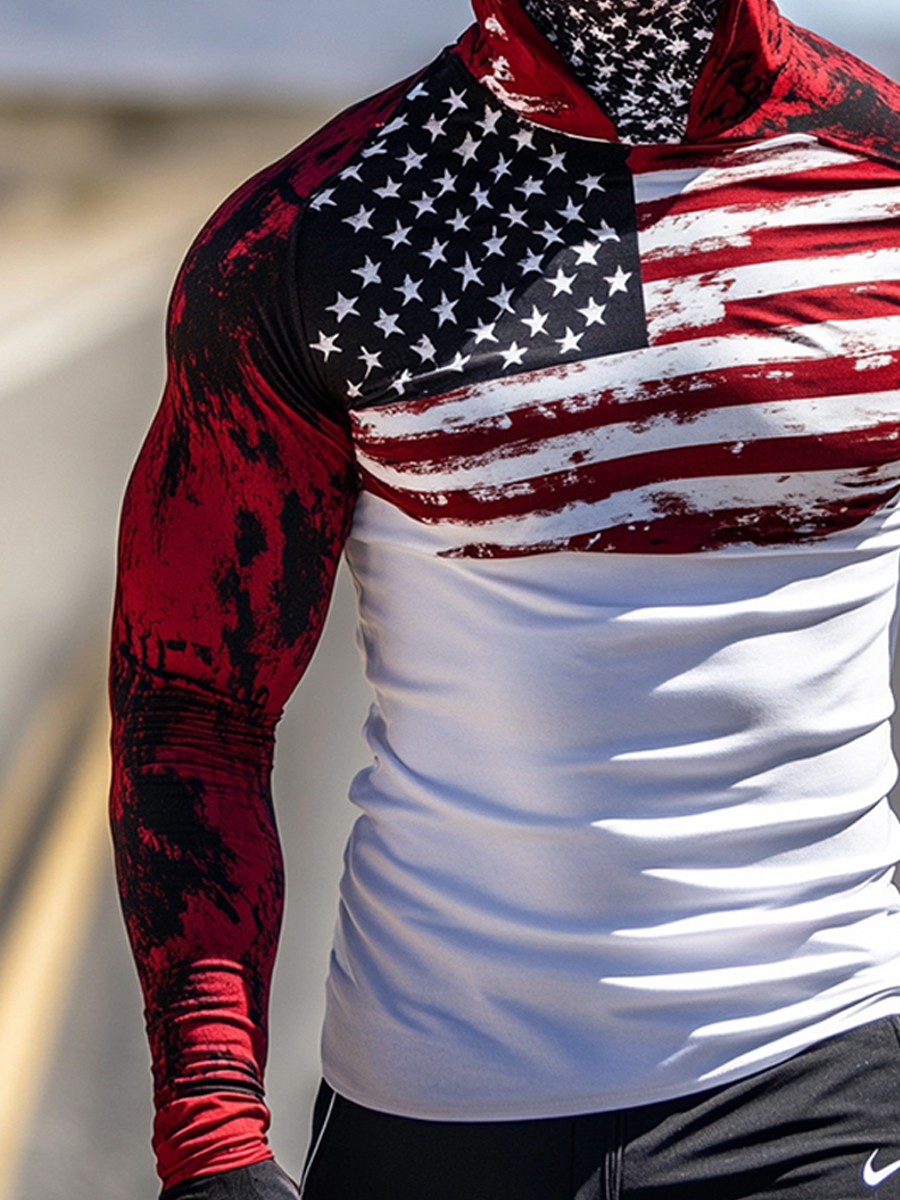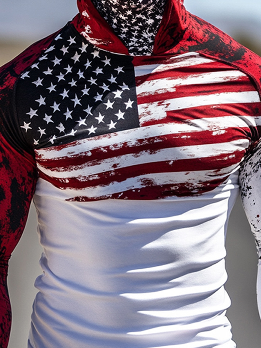 Men's Raglan Sleeve Finger Gloves Face Mask American Flag Print Sun Protection Hoodie