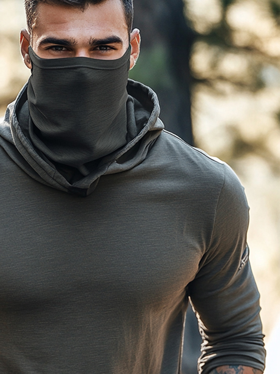 Men's raglan sleeve finger gloves face mask dark gray sun protection Hoodie