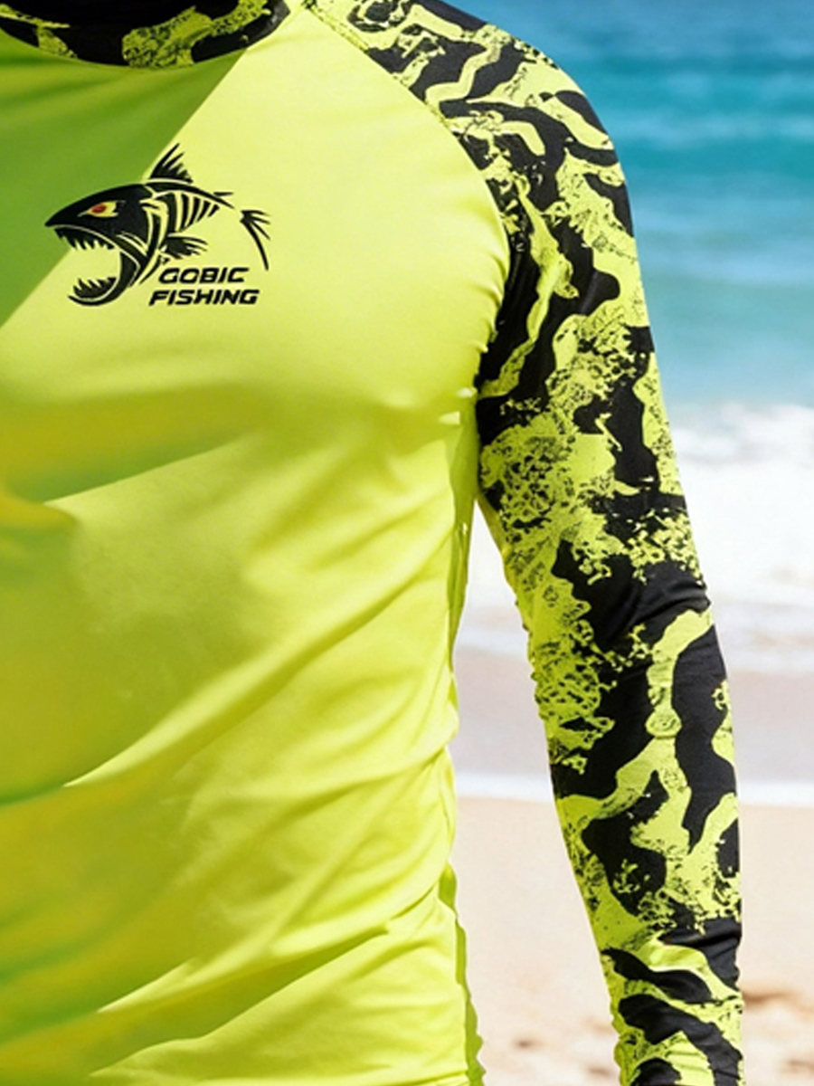 Men's Raglan Sleeve Finger Gloves Face Mask Fishing Graphic Print Sun Protection Hoodie
